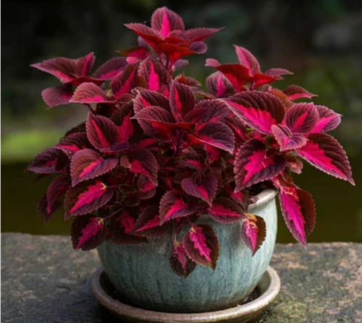 The color of Coleus leaves is a mix of pink, orange, green, yellow, or red. This brightly-colored shrub grows best in bright and indirect light.