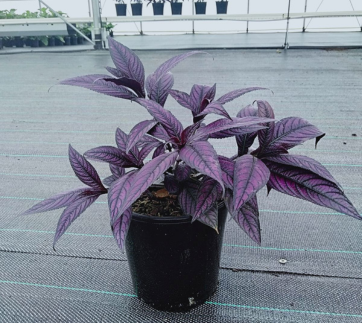 The dark purple leaves of the Persian Shield have deep veins. It can grow best in hot and humid conditions to form a bushy, large, mounded plant.