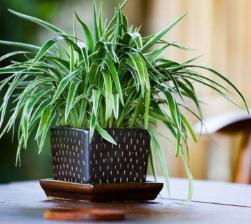 Spider Plant is ideal for bedrooms as it can easily remove harmful toxins from the air. It thrives well in indirect light and well draining soil.