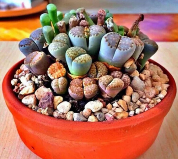This dwarf, succulent plant comprises plump, fleshy semi-translucent leaves that look like stones. Make sure it gets plenty of bright light.