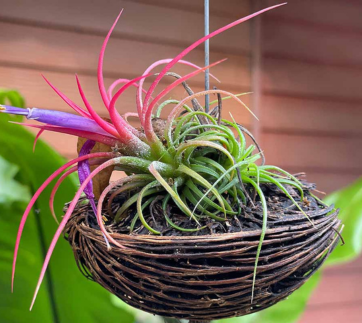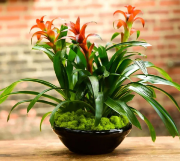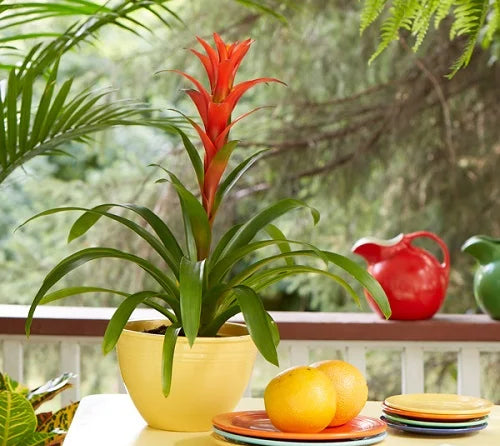 Bromeliads produce flowers in shades of orange, purple, bright red, or blue. Just make sure they get plenty of bright and indirect light all day long.