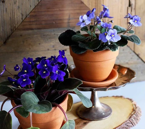 African Violet is a compact, low-maintenance houseplant with stunning hairy, thick leaves and violet-blue flowers. The plant produces flowers in small panicles.