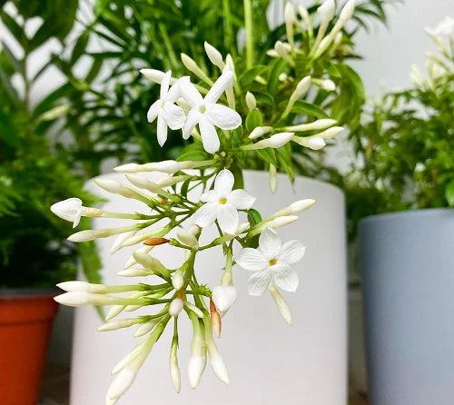 This warm climate plant is an excellent tabletop or hanging basket specimen. It has fern-like feathery green stems, and grows tiny white blooms in summer.